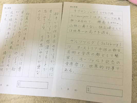えんぴつの線を消す時間を入れて、20~25分で書けるようになりたいです。当日、他の問題に時間をとられそうなので、できるだけ慣れておこうと思います。