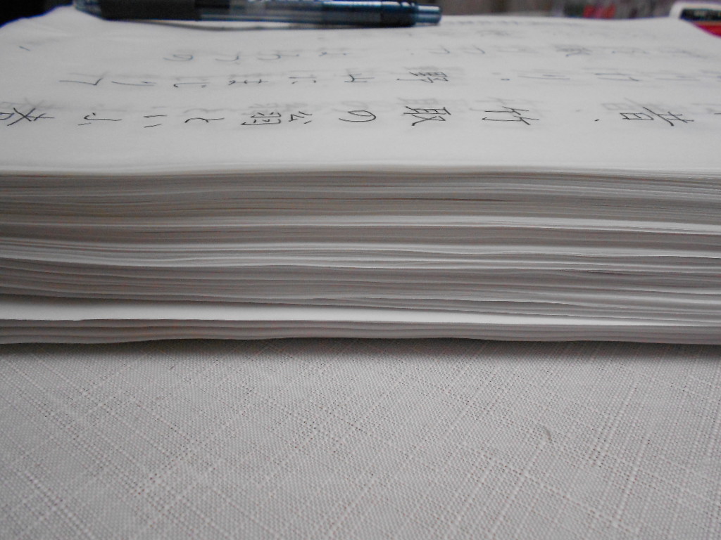 「続くかどうかわからないし~」と、数ヶ月おきに100枚ずつ市販のトレーシングペーパーを買ったのでなかなかの厚さになりました。文京女子高校で売っているペーパーを使う方が薄いようですし、送料を入れても安いようです。
