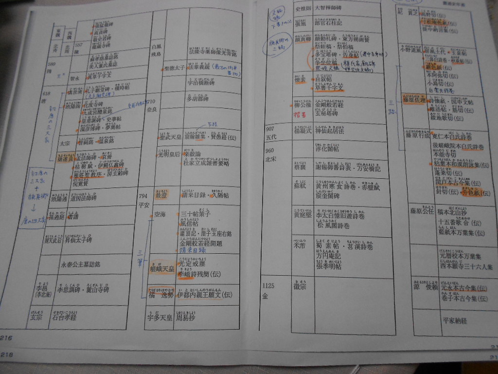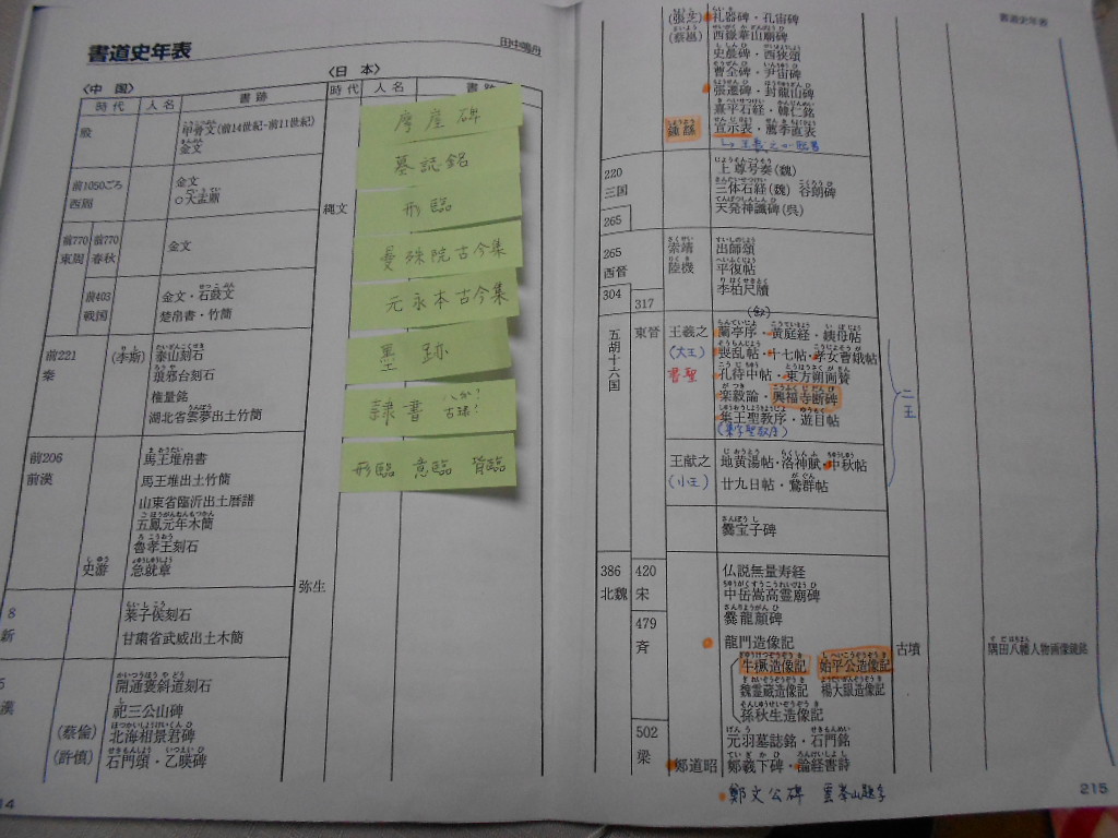 まずは過去問に出た人名や書道用語をチェック。う~ん、王羲之が活躍した頃って日本は弥生時代なのね…。