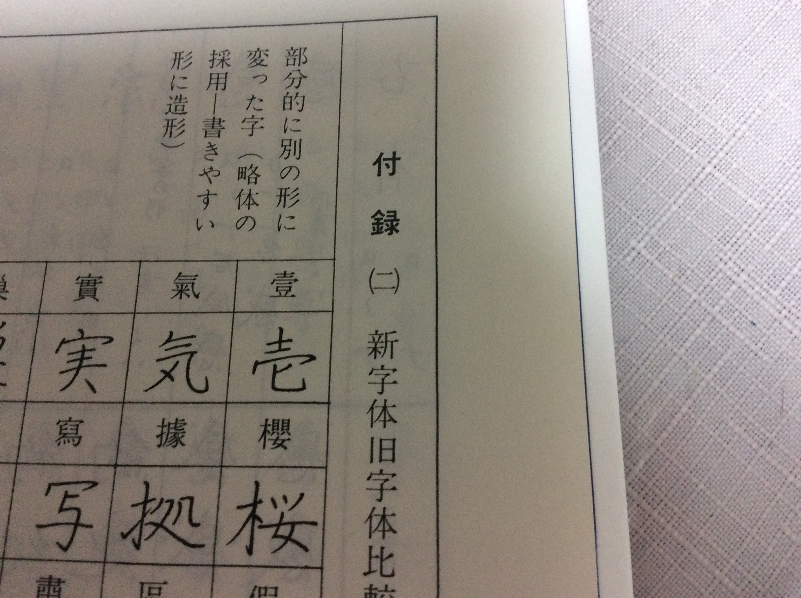 残りの2冊には、覚えるべきものとして旧字体121字・書写体201字が載っているので、どちらかを手に入れたほうがいいと思います。